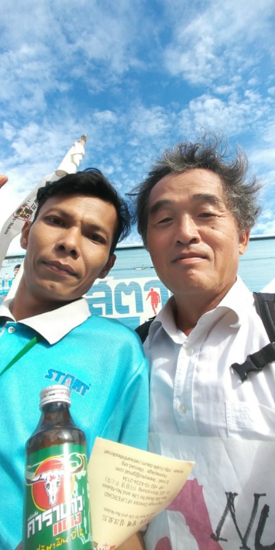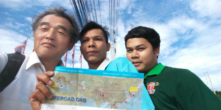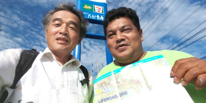 Mr. Hara left the car at the parking lot of a hotel, and walked 6km back to meet me.