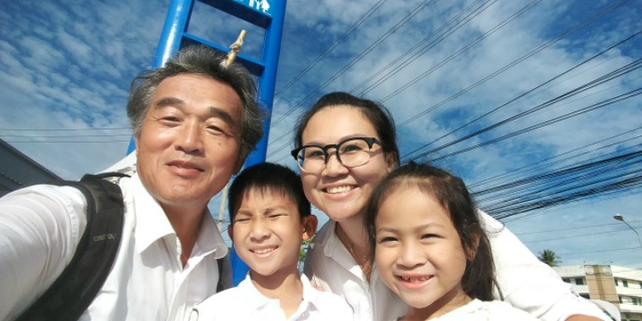 필자가 그럼 가족 함께 찍자고 해서 셀카로 찍으니 즉석에서 4인 가족이 만들어졌다.