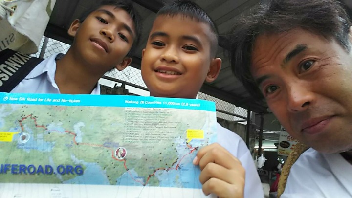 하라상은 호텔에 주차후 필자와 만나기 위해 거꾸로 6km를 걸어왔다. 그 사이에 만난 지구촌 식구들 사진이다.
