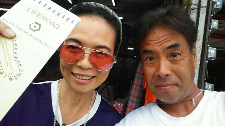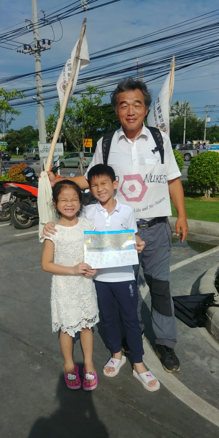 At a rest area, I gave leaflet to a mother of children who showed curiosity.