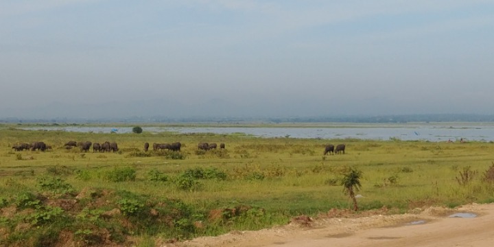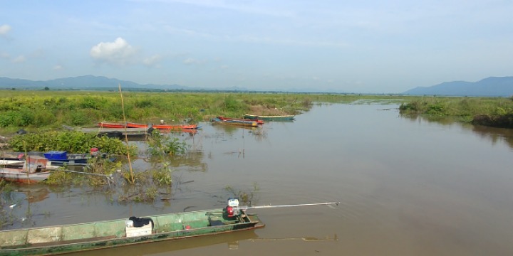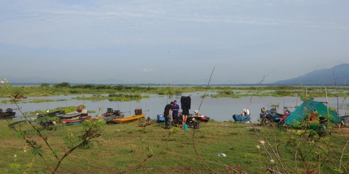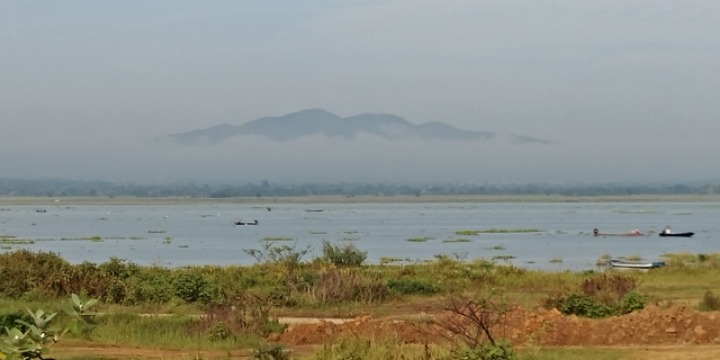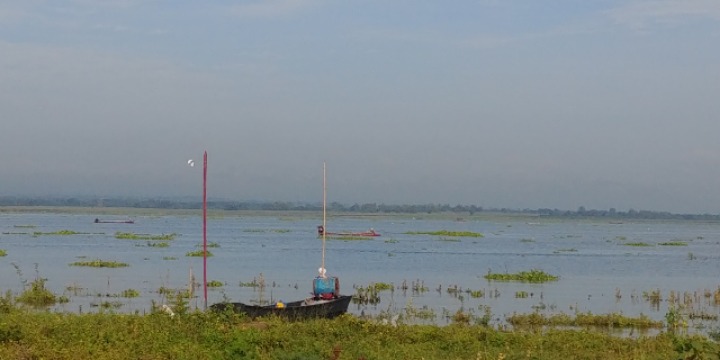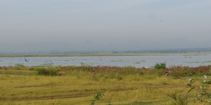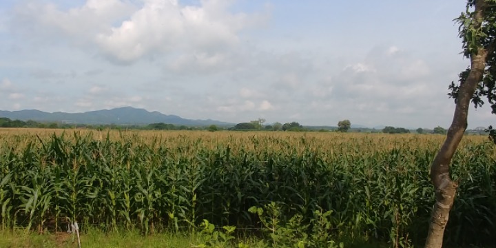 At the end of the lake, a huge corn field is spread.