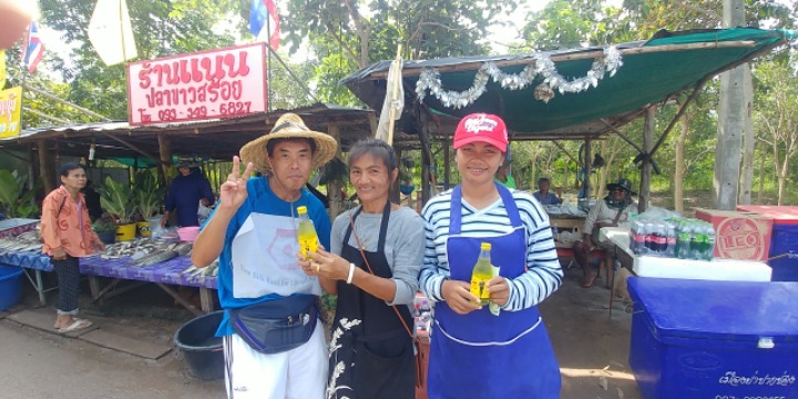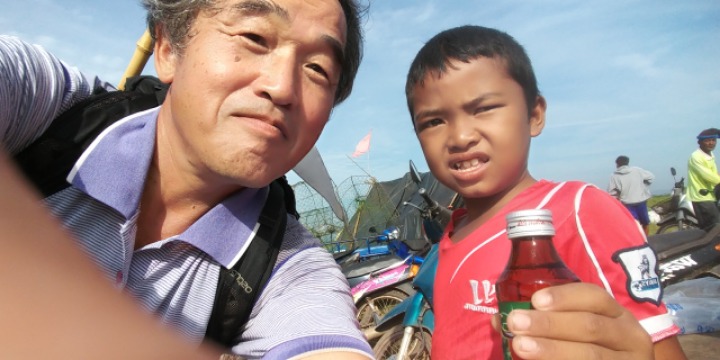 구경을 하고 있는 필자에게 물고기 잡는 가족이 시원한 음료수를 권한다.