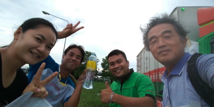 어느 화물차 기사들이 길가에서 쉬고 있다가 큰병 생수를 주길래
