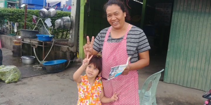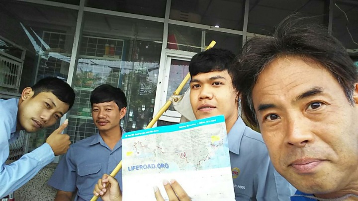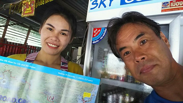 They gave us a large bottle of cold water. I gestured that it is too heavy.