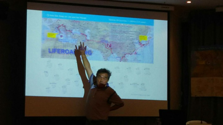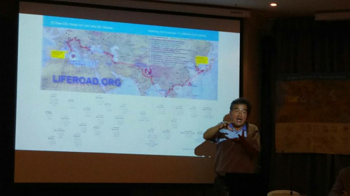 필자가 실크로드의 경위와 플랜에 대해 설명하고 있다.