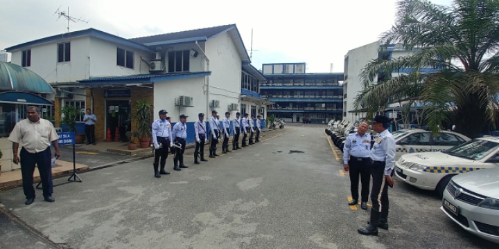 마지막에 교통경찰서를 지나는데 마침 마당에서 의전연습을 하고 있다.