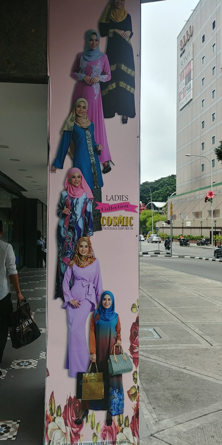 이 백화점 부근의 기둥에서 본 다양한 패션.