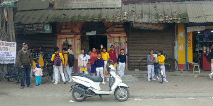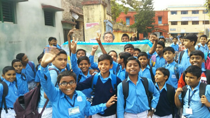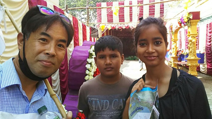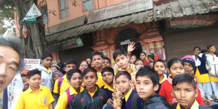 Mr. Hara took a picture of the students who led me the way to Hanseshwari Temple.