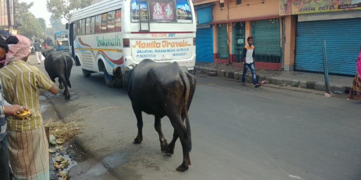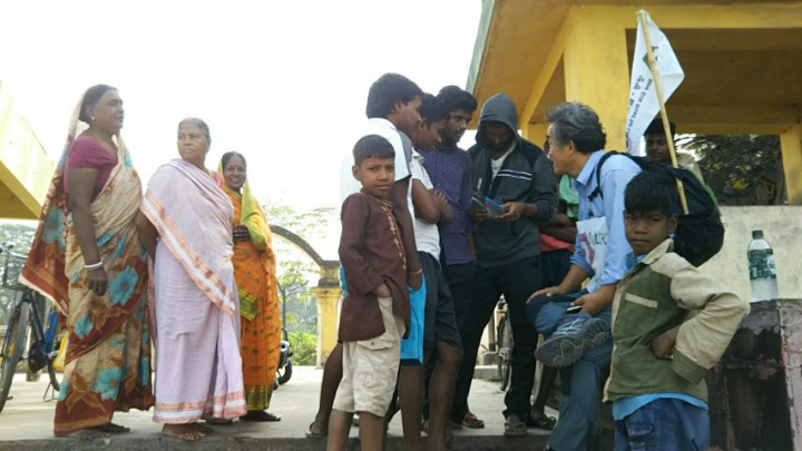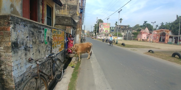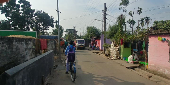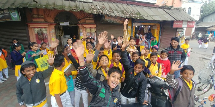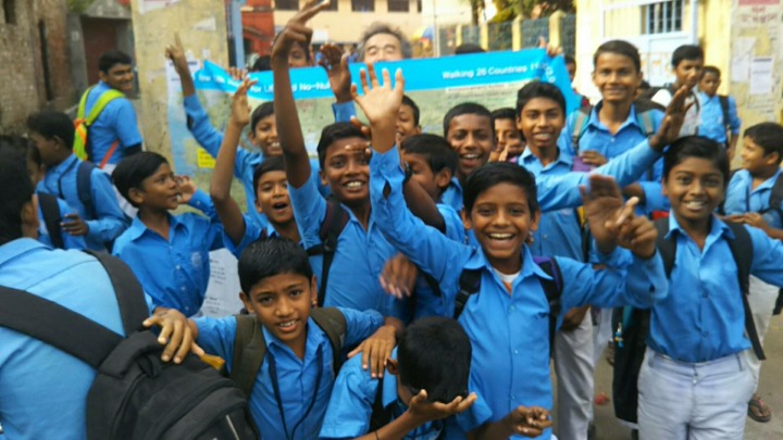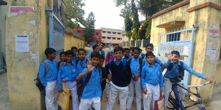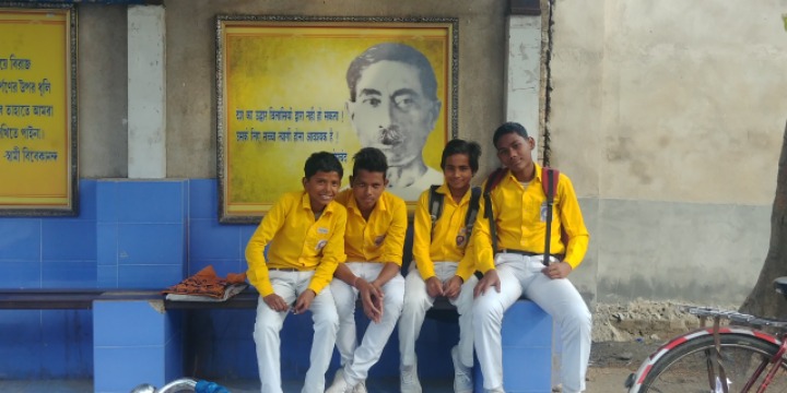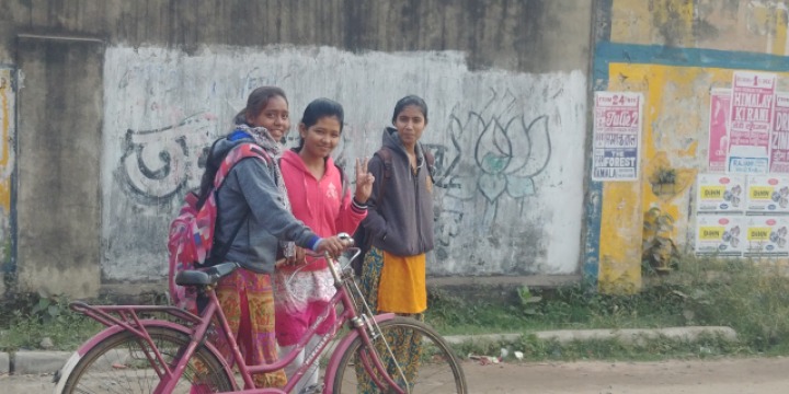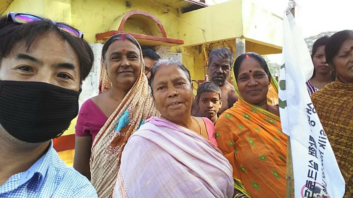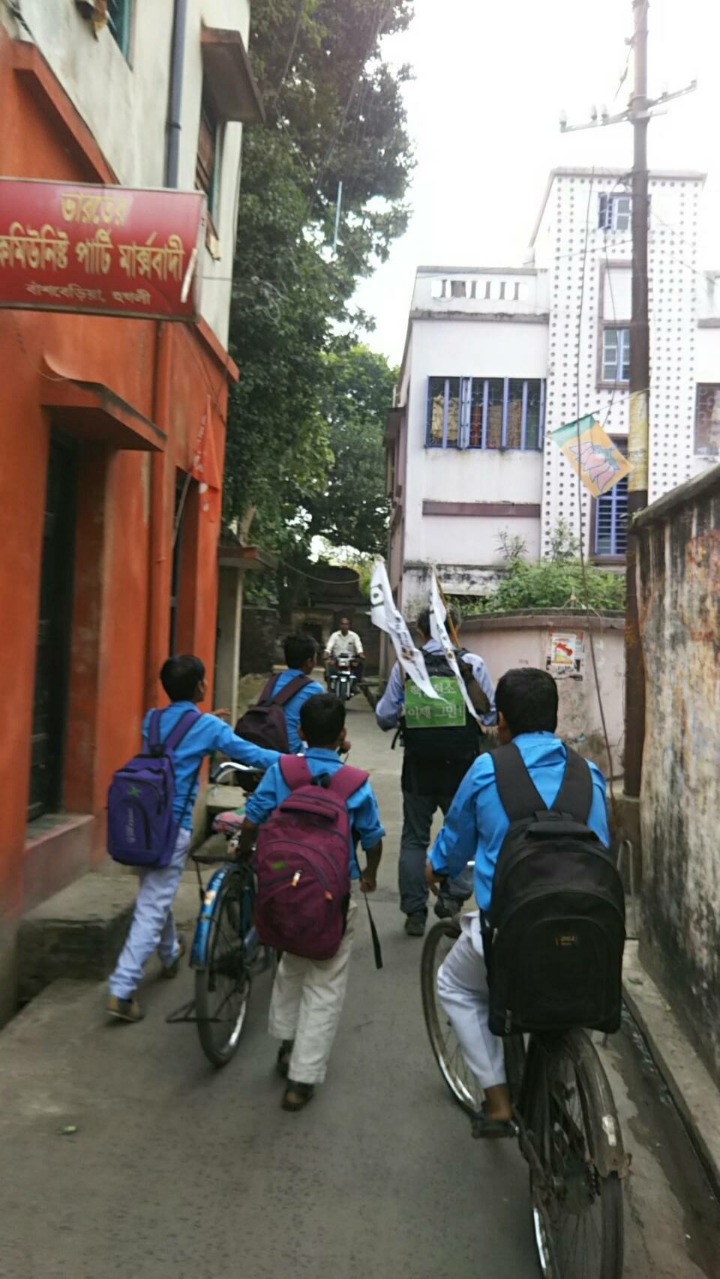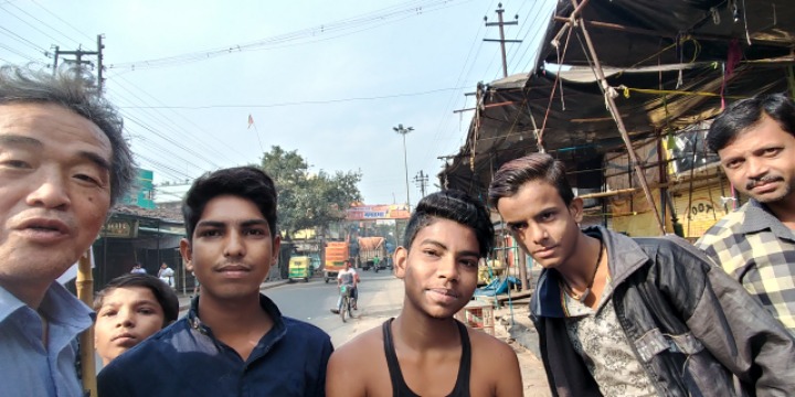필자에게 Hanseshwari Temple 사원으로 가는 길을 안내해주는 학생들을 하라상이 찍었다.