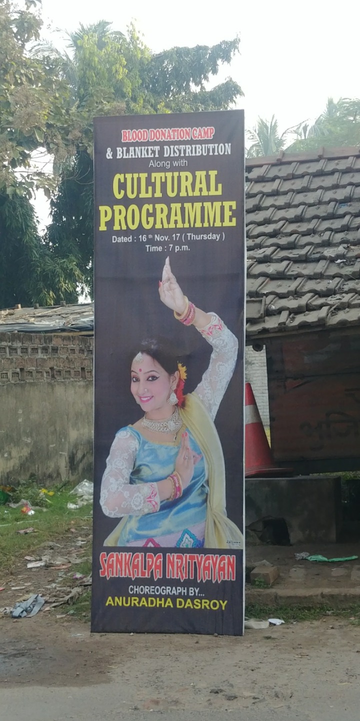 The sighboard showes blood donation campaign and cultural program organized by blanket distribution camp.