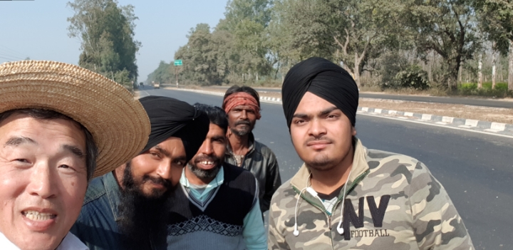 11. 그런 후 한참을 걸어가는데 오토바이들이 다가온다. 바로 그 당사자가 일부러 찾아온 것이다. 파란모자의 인물이다. 선거철이니만큼 젊은 수행인들을 대동했다.