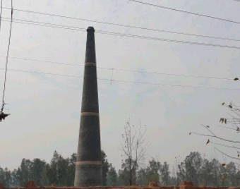 Nowadays, the chimney of a brick factory is brought to a finish by concrete.