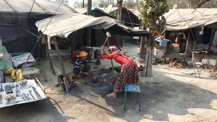 16. 풀무질로 농기구연장을 다듬고 있다.