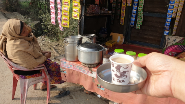 4. 쉬는 동안 짜이 한잔. 짜이는 인도의 향신료에 우유를 넣고 끓여서 걸러낸 차다. 모든 인도인이 즐기고 있다. 한잔 7루피(120원).