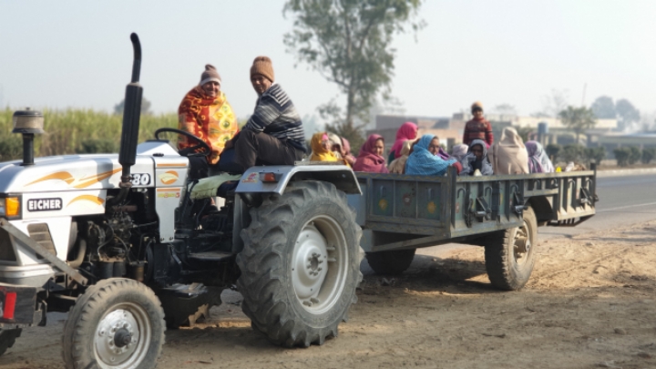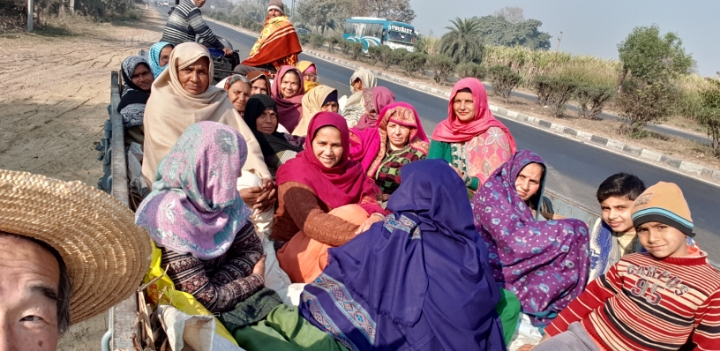 5. 트랙터 뒷칸에 아주머니들이 가득하다.