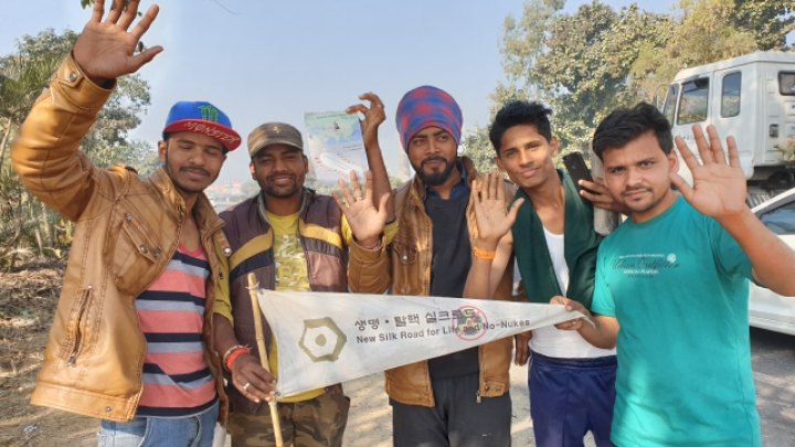 27. 도착지 부근의 동네에 만난 사람들. 영어는 잘 몰라도 지도를 보여주고 캘커타에서부터 걸어온 이야기를 하면 찬탄을 한다. 그리고는 히로시마와 후쿠시마의 지명을 거론하면서 지구가 위험하다는 얘기를 하면 금새 동감한다.
