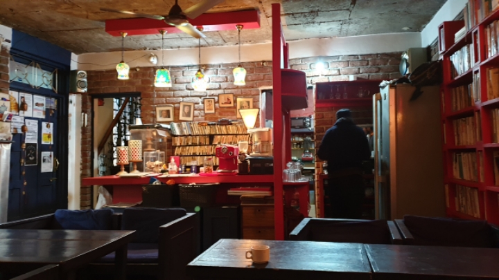 19. 시내 중심가에 있는 커피숍에서 휴식.