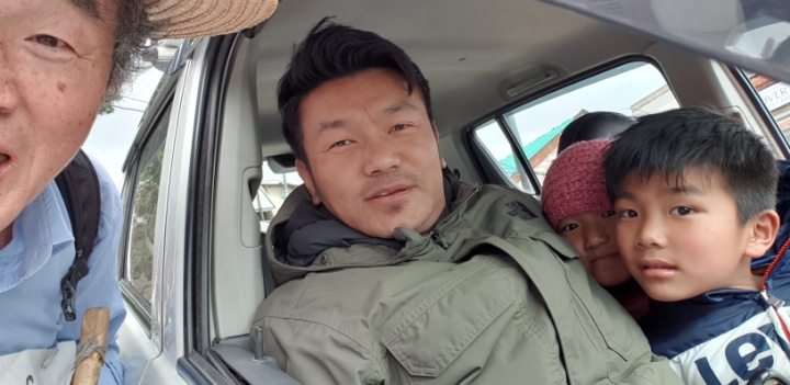 23. 티벳인 가족이 차를 세우더니 필자에게 호기심을 가진다. 얼굴은 한국인이나 다름없다.