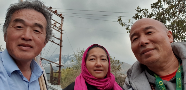 25. 헬맷쓴 티벳인은 오토바이로 왕래하면서 일찌기 걸어가는 필자를 봐두었던 모양이다. 내려서 함께 한 컷.