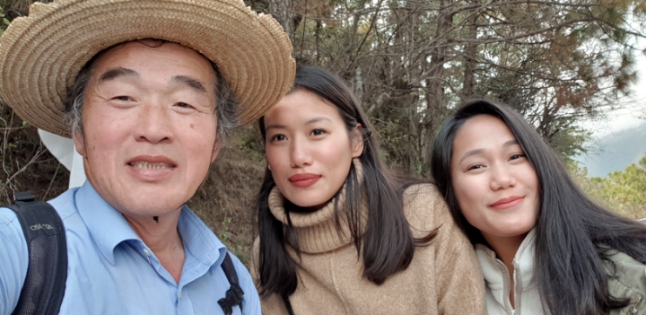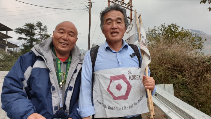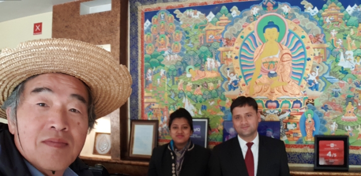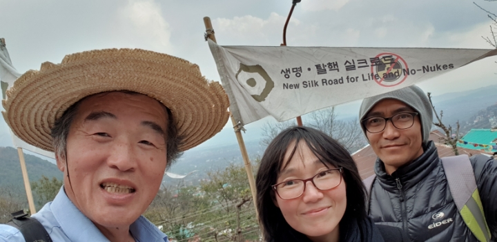 I met a Korean couple who is walking down after participating in Buddhist mass.