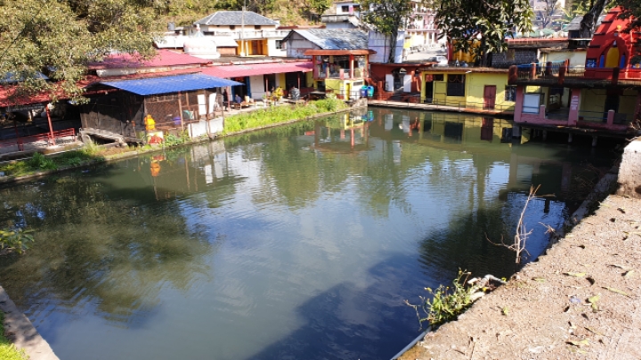 The water originating from Himalaya is temporarily stored in village pond and flows out.