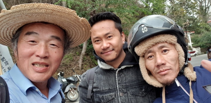 The Tibetan with helmet saw me before while he was riding motorcycle going up and down.