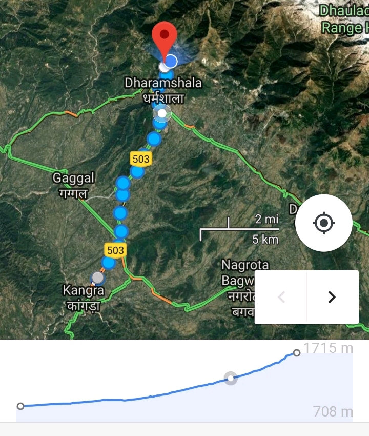 From here to Dharamshala, the altitude difference is 500 meters.