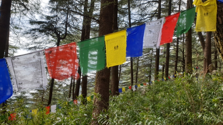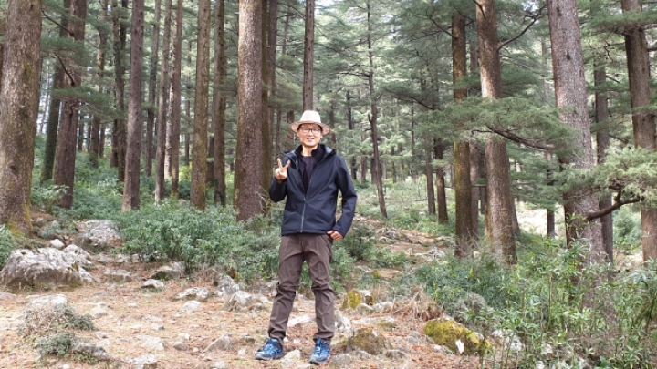 The youth with a hat in this picture is a Korean traveler who stays at Dharamshala for a long time. We went trekking toward Himalayas.