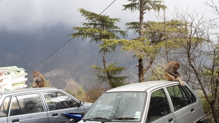 21. 숙소부근의 자동차 위에 걸터 앉은 원숭이들.