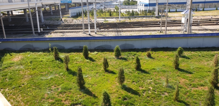 6. 스프링쿨러로 녹지대를 관리하고 있다.