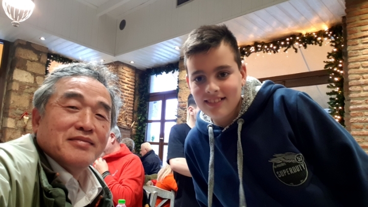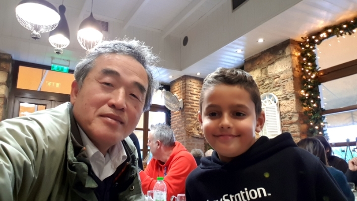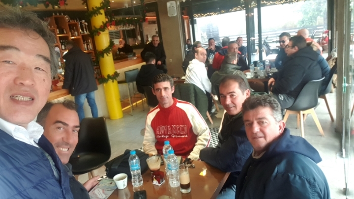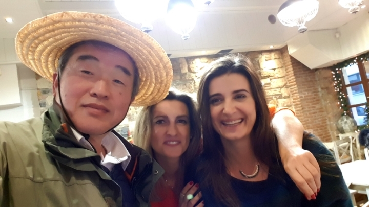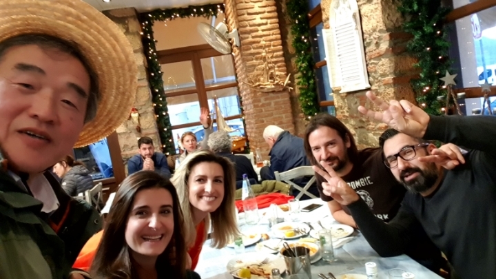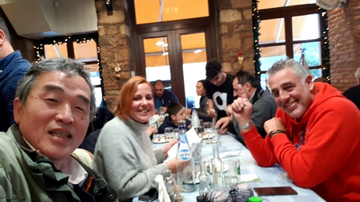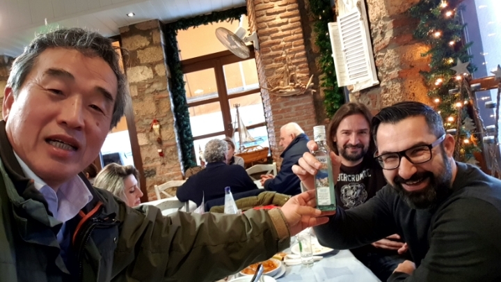 43. 안경쓴 분은 필자에게 음료수 병을 선물로 보냈다. 혹시 몰라서 맛을 보니 알콜이다. 금주중인 필자는 감사의 뜻만 표하고 돌려보내면서 함께 셀피.