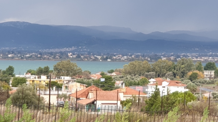 15. I captured the moment by photo, which showed the characteristic landscape of Greek mountain, field, and sea.