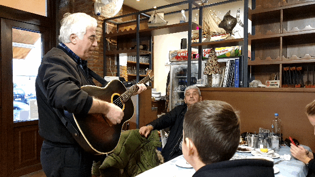 38. I looked for a restaurant which served a nice dish of fish. The family next to my table smiled at me.