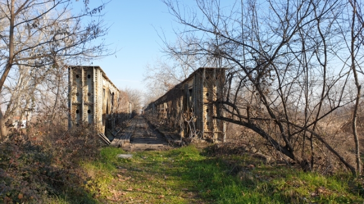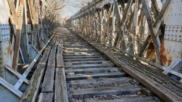 19. A rusty old bridge.