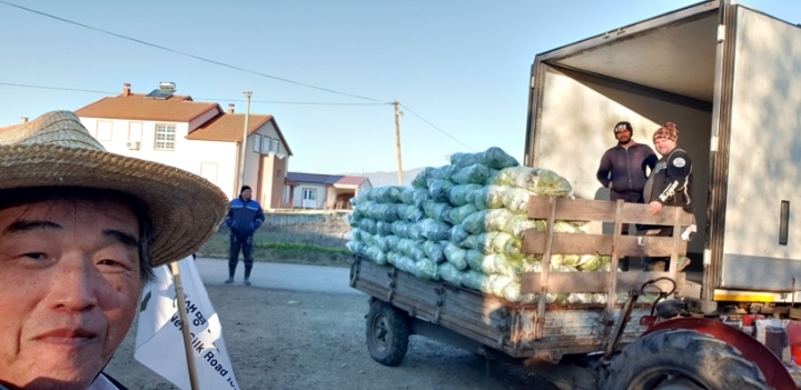 33. 목적지 Miravtsi 마을에 도착하니 양배추를 수확해서 싣고 있다.