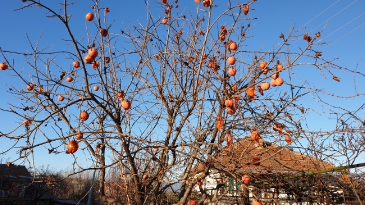 38. The persimmons are ripe at a farm house. They did not harvest the persimmon, and it becomes food for birds. I could feel humaneness.
