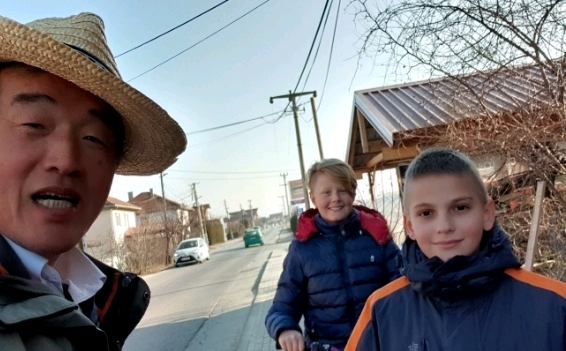 아이들이 먼저 나그네와 셀피를 찍기 시적한다.