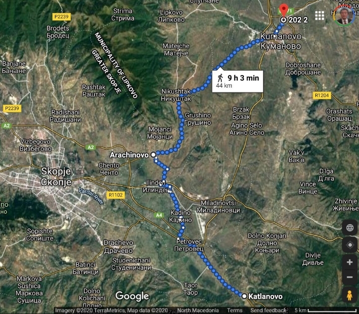 which starts from Katlanovo village via Scopje suburb to Kumanovo.