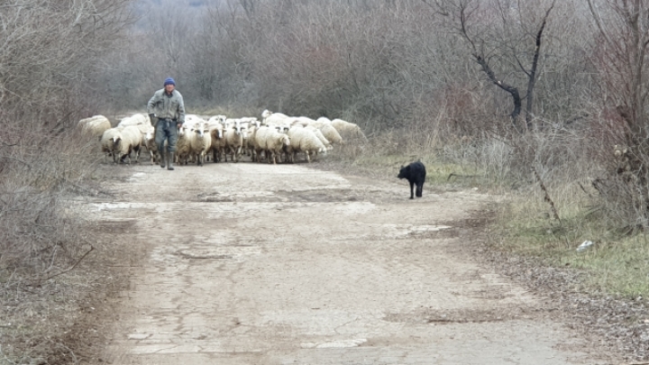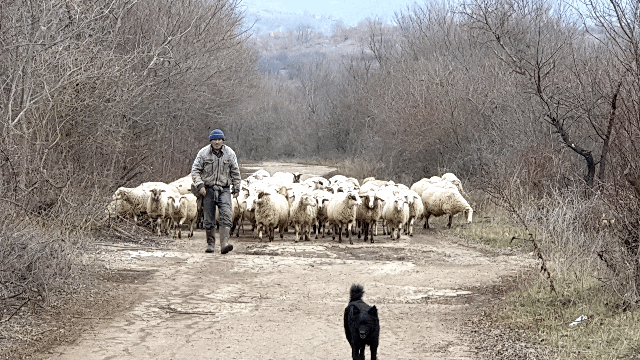 17. I saw a herd of sheep at mountain ridge over the village.