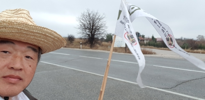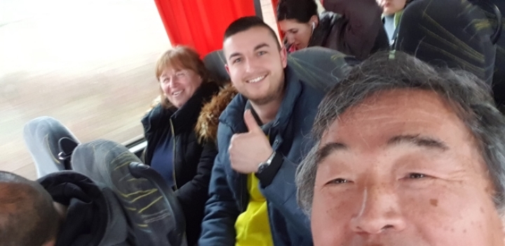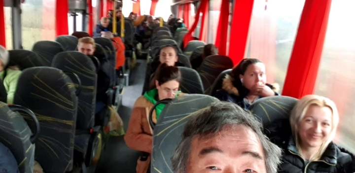 19. 어느 마을에 도착하니 학생들이 등하교중이다. 나그네에게 호기심을 갖고 오길래 팜플렛을 나눠주었더니 순식간에 동이 났다. 통학버스안에서 대기하던 학생들까지 몰려온 것이다. 그리고는버스 안에서 필자의 사진을 찍는다.