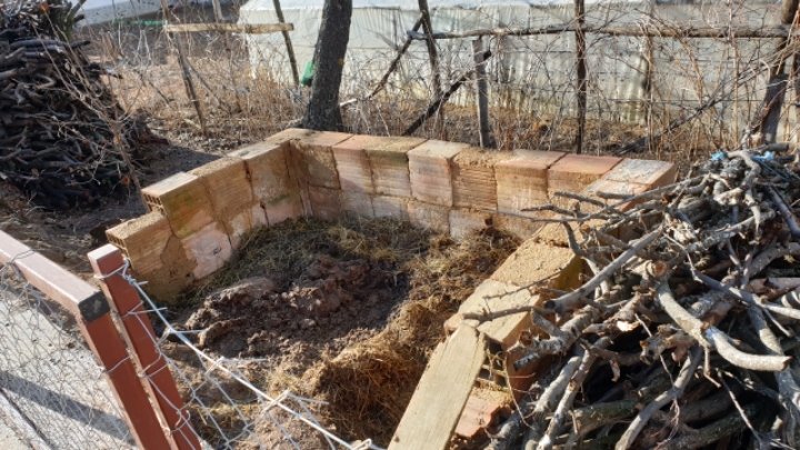24. 어느 주택가의 퇴비간이다. 농사 부산물과 낙엽 등을 부숙시키는 장소다. 벽돌로 튼실하게 둘렀다. 농가의 필수공간이다.
