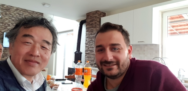 27. This man is the owner of the house. He invited me to come in his house. His name was Goce and he was working in New York of U.S. He came to hometown for a while. He said he has a Korean friend. He called his friend by internet protocol video. The Earth village is very small and close to me.