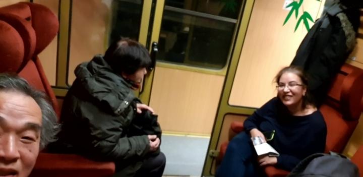 43. 이 기차는 칸막이 형이다. 알게 된 승객과 함께 셀피.