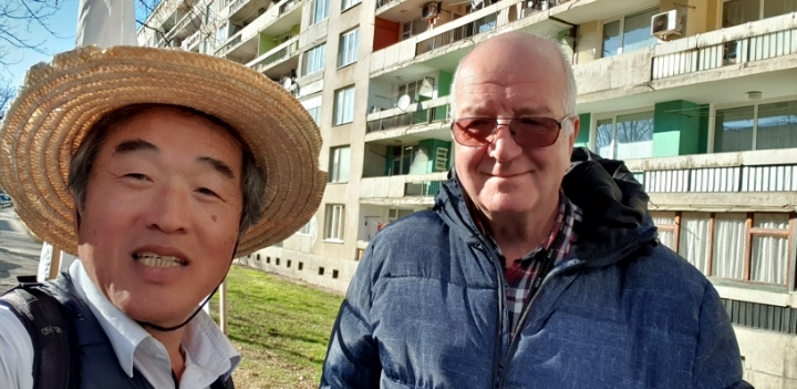 50. 숙소 부근에서 시민이 나그네에게 셀피를 청한다. 필자의 카메라에도 동시에 담았다.