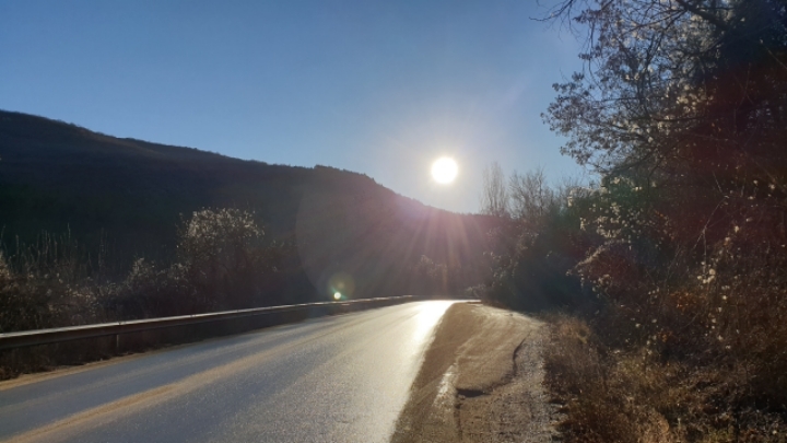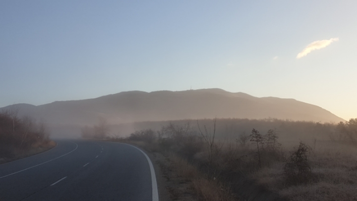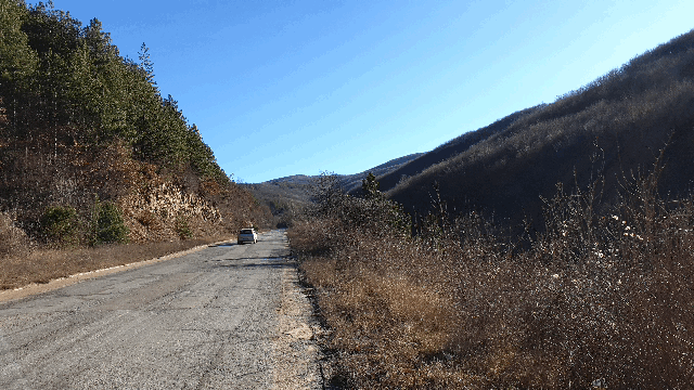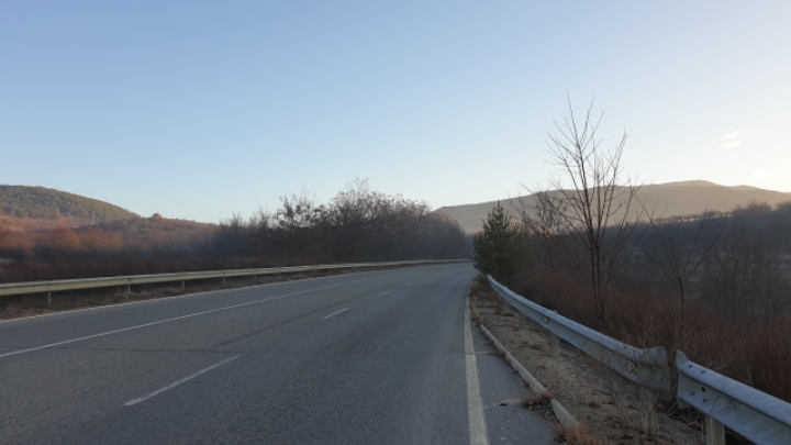 On Sunday morning,there are few cars on the road which is an important highway connecting Sopia of Bulgaria and Scope od North Macedonia.