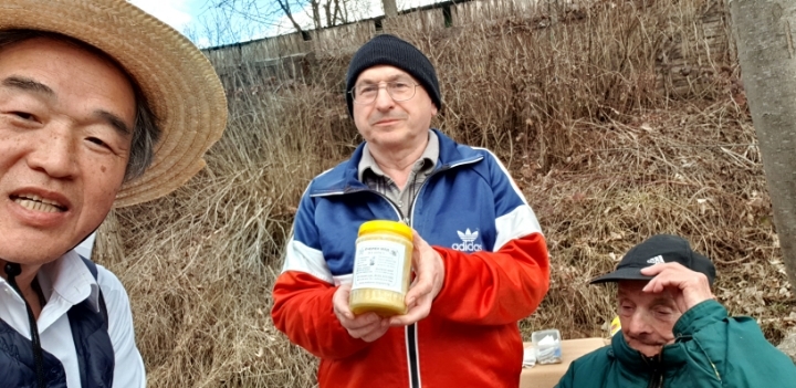 37. 산을 넘어서 평원에 도달할 무렵 이 분이 걸어가는 나그네를 보더니 선물을 준다. 꿀인 것 같은데 고체형태라서 맛을 보니 역시 꿀이다. 양봉을 하시는 분이다.