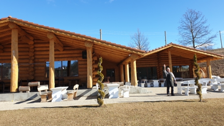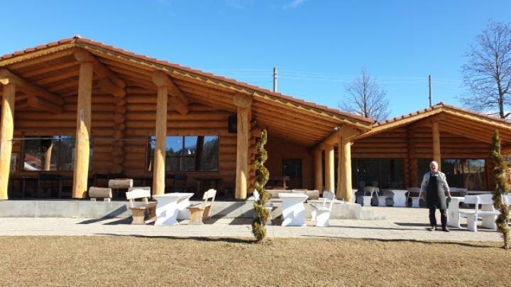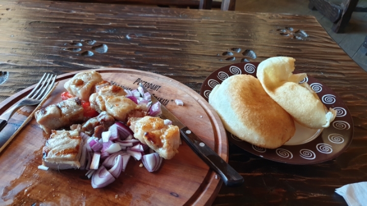 I eat lunch at a restaurant on the peak of the pass. It is a wonderful wood house.