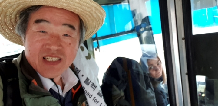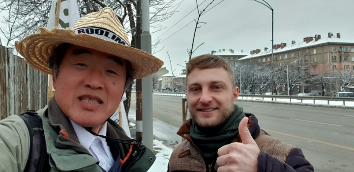 35. 잠시동안 함께 걸은, 영어가 유창한 시민. 엄지척의 셀피다.