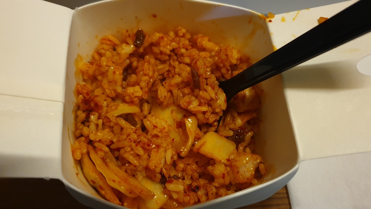 It is a fried rice dish with kimchi. In these days my mouth is very happy.