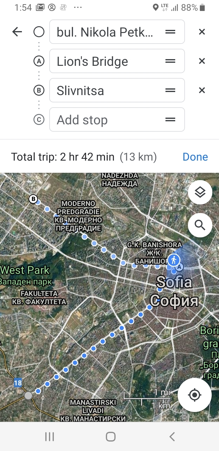 3. 그저께부터의 폭설과 빙판길 위험으로 중단된 구간이다. 구릉지를 경유하여 소피아경계에 이르는 16km.